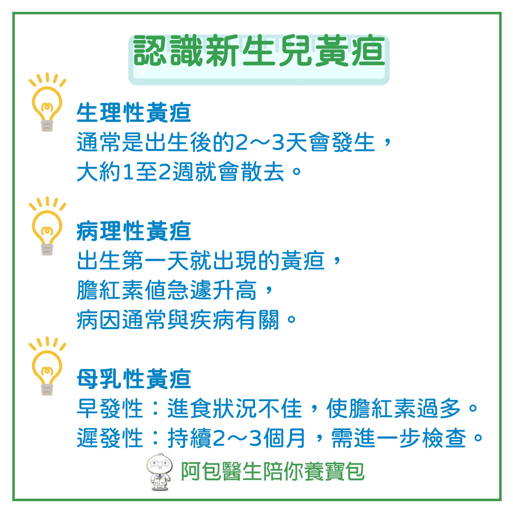 新生兒黃疸類型分三種,包括: